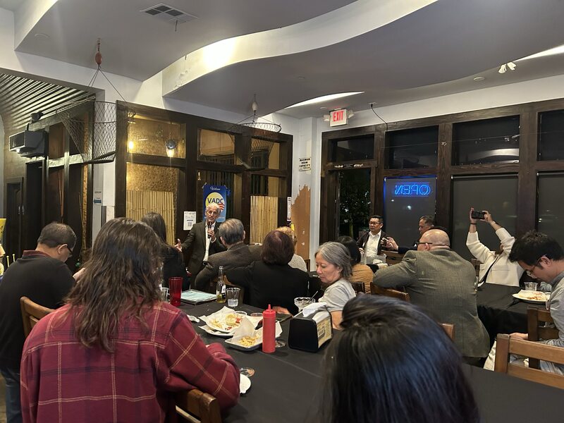 Assemblymember Josh Lowenthal speaks at VADC's December 2025 holiday mixer